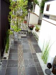 アプローチ 石貼り 瓦