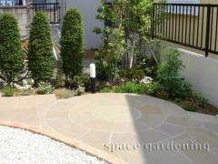 ナチュラル新築外庭 アプローチ 石貼り 方形