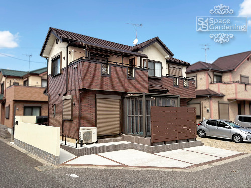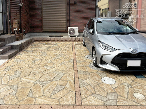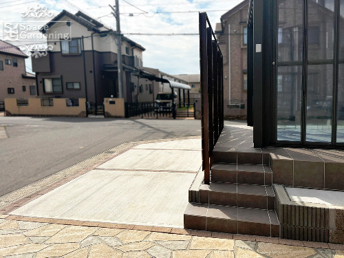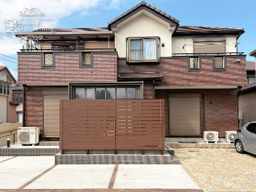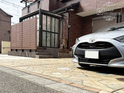 千葉県 船橋市 外構リニューアル ローラーストーン 駐車スペース拡張 スロープ 目隠しフェンス 門袖