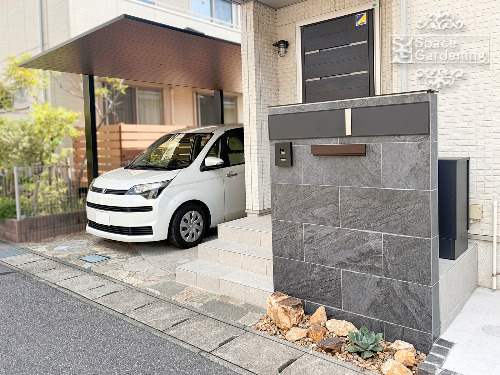 リクシル SC カーポート 門袖タイル貼り 笠木
