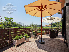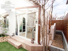 千葉県流山市 庭リフォーム工事 ガーデンルーム YKK ソラリア フラット型 テラス囲い 樹脂デッキ YKK リウッドデッキ200
