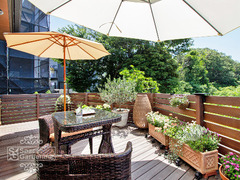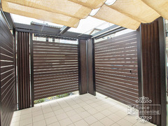 千葉県我孫子市 目隠しフェンス エクスタイル アーバンフェンス 樹脂デッキ 三協アルミ ヴィラウッド テラス屋根 タカショー Sポーチ